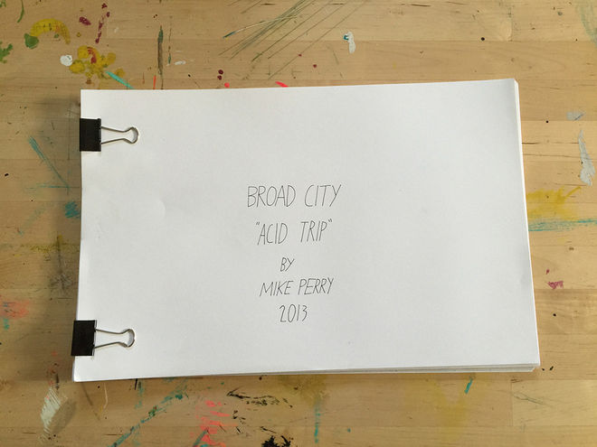 Ink-vomiting letters, spinning breasts, exploding geometry: one never knows what to expect from the animated title sequences of Broad City. Artist Mike Perry had so many ideas ahead of his initial meeting with Ilana Glazer and Abbi Jacobson, the show's creators and stars, that one was not enough. So every episode of the Comedy Central series — returning for its third season next spring — offers the viewer a different sequence and a new glimpse into Perry’s limitless imagination.