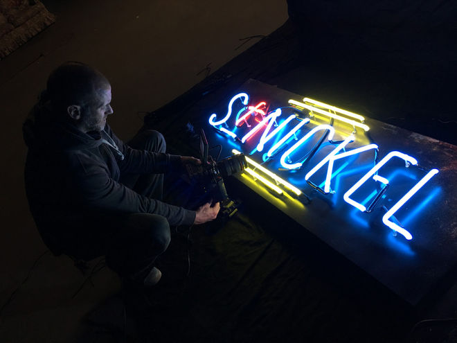 Shooting the L-shaped neon on-location in Sudbury